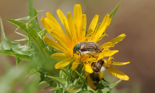 Number one was a (Scolia flavifrons)Mammoth wasp (yes really) Europes largest wasp, and very clolourful, in my ignorance I took it to be a type of hornet, but found the ID on one of the many blogs that include insects from Lesvos.
